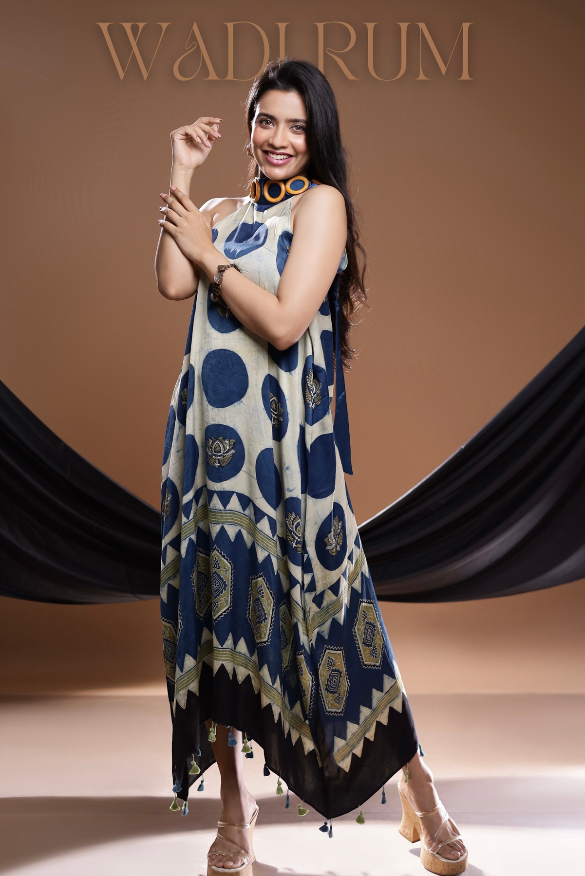 Fabric  – Block Printed Ajrakh on Modal Satin ( Not See through at all )